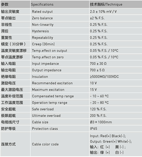 不銹鋼材料,低外形,采用金屬箔式應變片技術。